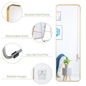 Full Length Wall Mounted Body Mirror with Free Standing Stand-Golden – Color: Golden