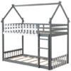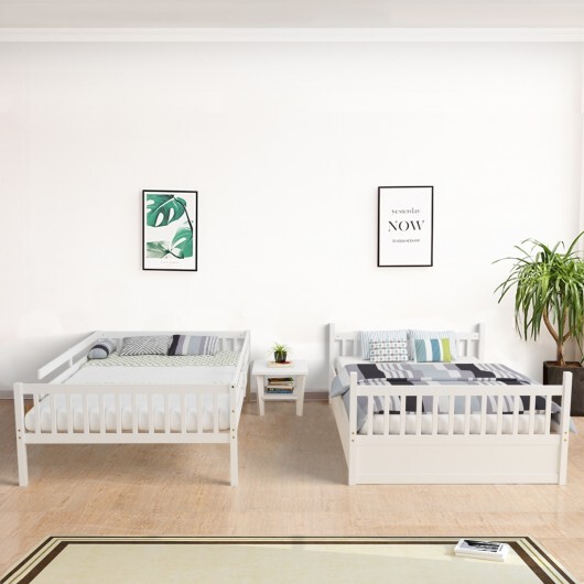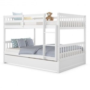 Full over Full Bunk Bed Platform Wood Bed with Ladder-White – Color: White