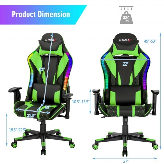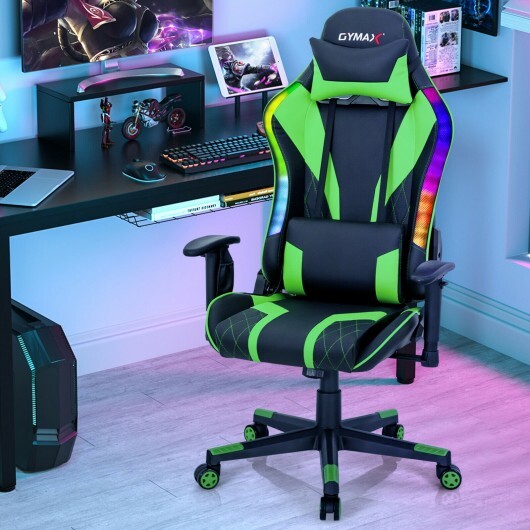 Gaming Chair Adjustable Swivel Computer Chair with Dynamic LED Lights-Green – Color: Green