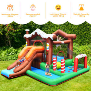Specifications: Color: As the picture shows Material: 420D+840D Oxford Cloth Dimension: 153.5”x 120”x 86.5”(L x W x H) Net Weight: 32 lbs Max Weight of each Kid Allowed: 66 lbs Maximum Number of Children Allowed: 3 Recommended Age: 3-10 Years Old