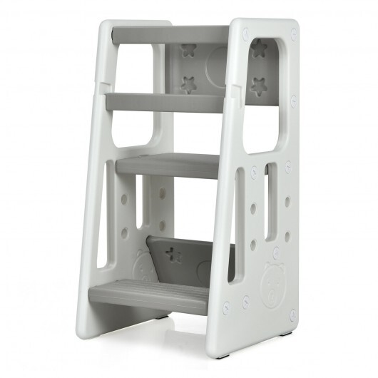 Kids Kitchen Step Stool with Double Safety Rails -Gray – Color: Gray