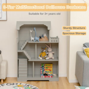 This 3-floor dollhouse bookcase with fancy appearance will be a great companion for your beloved little one.