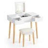 Specifications: Color: Black + Rustic Brown/Gold + White Material: Metal + Engineered Wood Table Dimension: 23.5″ x 15.5″ x 64.5″ (L x W x H) Stool Dimension: 17″ x 12″ x 16.5″ (L x W x H) Table Height: 30″ Seat Height: 16.5″ Tabletop Weight Capacity: 88 lbs Stool Weight Capacity: 330 lbs Net Weight: 52.5 lbs Package includes: 1 x Vanity Table 1 x Stool 1 x User Guide