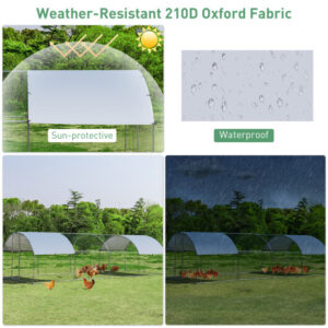 Large Metal Chicken Coop with Cover – Color: Silver