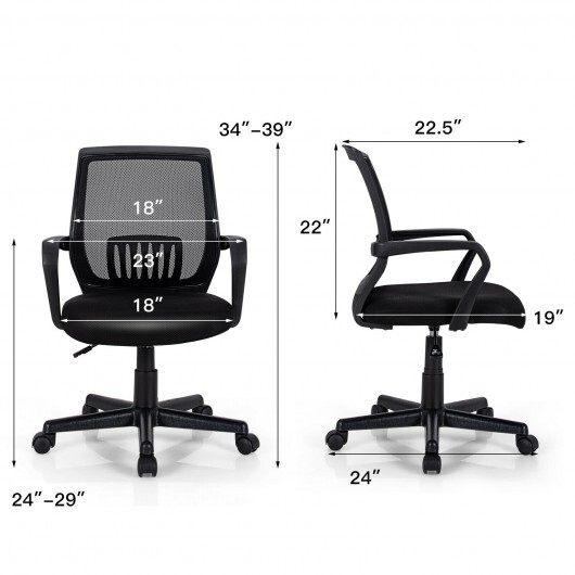 Mid-Back Mesh Height Adjustable Executive Chair with Lumbar Support – Color: Black