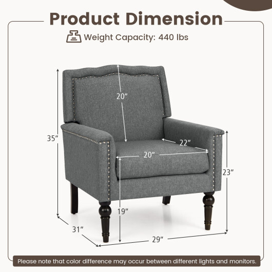 Specifications: Color Grey Materials Linen Fabric Sponge Rubber Wood Plywood Product Dimension 29″ x 31″ x 35″ Size of Seat 20″ x 22″ Backrest Length 20″ Armrest Height 23″ Seat Height 19″ Net Weight 37 lbs Weight Capacity 440 lbs