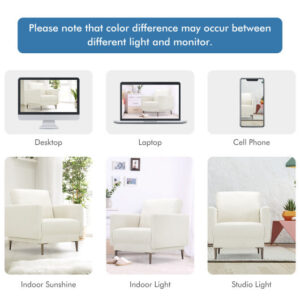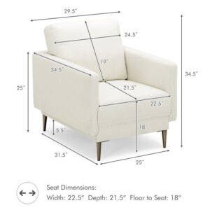 Specifications: Color: White/Gray Cushion Upholstery Material: Fabric Cushion Fill Material: Sponge Leg Material: Metal Frame Material: Plywood Product Dimension: 29.5″ x 34.5″ x 34.5″ (L x W x H) Seat Size: 22.5″ x 21.5″ (W x D) Backrest Cushion Size: 24.5″ x 19″ (L x W) Seat Height: 18″ Armrest Height: 25″ Maximum Capacity: 300 lbs Net Weight: 54 lbs Recommend Loveseat: 82754106 Package Includes: 1 x Accent Chair 1 x Instruction