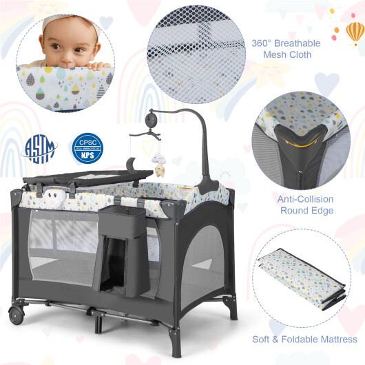 Multi-Functional Baby Playpen with Mattress and Removable Changing Table-Gray – Color: Gray