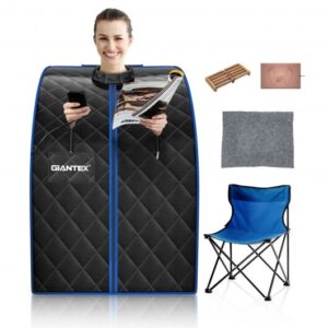 Portable Personal Far Infrared Sauna with Heating Foot Pad and Chair-Black – Color: Black