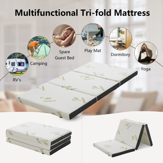 Specifications: Color: White Material: Bamboo memory foam fiberglass S Overall dimension: 78″ x 38″ x 3″(L x W x H) Folding size: 26.5″ x 38″ x 9″ (L x W x H) Net weight: 9 lbs M Overall dimension: 73″ x 53″ x 3″(L x W x H) Folding size: 23″ x 53″ x 9″(L x W x H) Net weight: 13.2 lbs L Overall dimension: 78″ x 58″ x 3″(L x W x H) Folding size: 27″ x 58″ x 9″(L x W x H) Net weight: 20 lbs Package includes: 1 x Tri-fold mattress 1 x Carrying bag 1 x Instruction