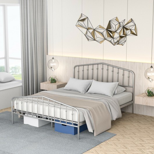 Specifications: Color: Silver/Black Material: Steel Overall dimension: 82″ x 60.5″ x 40″ Height off floor: 9″ Max weight capacity: 485 lbs Net weight: 46 lbs Package includes: 1 x Bed frame 1 x User guide