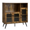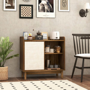 Rattan Buffet Sideboard Mid Century Floor Storage Cabinet with Sliding Door and Adjustable Shelves-Walnut – Color: Walnut