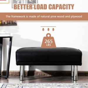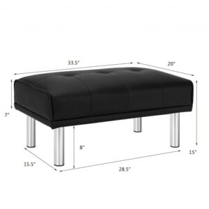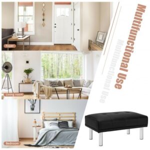 It can correspond with your sofa to form a comfortable recliner. Or you can place it at the end of your bed. Stainless steel and solid wood materials showcase durability while the overstuffed PU cushion reveals comfort. The bench is stable and cozy once assembled with simple steps. It is lightweight yet can hold a maximum load capacity of 265 lbs. Benefitted from its classic appearance this bench is a versatile match for most of the home.