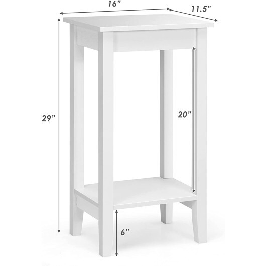 Features 4 solid wood legs this end table is stable enough to firmly hold your items. The unique 2-tier design of tabletop & shelf can provide you with ample storage space for daily use. What’s more as it is with compact size you can place it at any position you like such as sofa side bed side or narrow corners. Such a simple and elegant end table will be the top choice of your home.