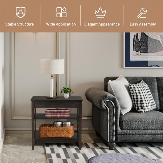 This side table is your great option which is a combination of decoration and function. Durable MDF makes the table quite sturdy for long service life. The tabletop and bottom shelves are convenient for you to take and put daily things while the storage drawer provides spacious space for small or private items. The compact design is perfect for small spaces and works equally well near the bed or sofa. With an attractive modern style this side table is suitable for any room and a charming complement to your home.