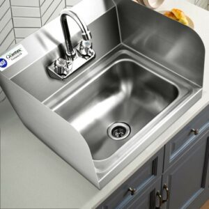 Specifications: Color: Silver Material: Stainless steel Product dimensions: 17″ x 15″ x 14.5″ (L x W x H) Net weight: 11.5 lbs Package includes: 1 x Stainless steel sink 1 x Wall mount bracket 1 x User guide