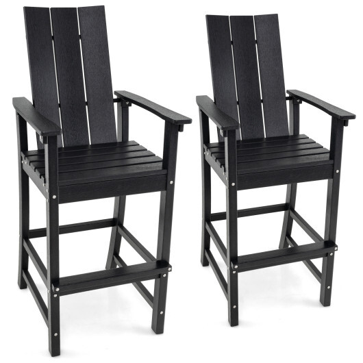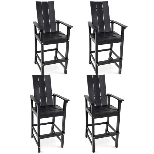 Specifications: Color Black/Gray/Navy Blue/Turquoise Material HDPE Stainless Steel Overall Dimensions 27.5″ x 23″ x 52″(L x W x H) Seat Dimensions 17.5″ x 16″ x 30″(W x D x H) Backrest Dimensions 14.5″ x 24″(W x H) Armrest Width 3″ Footrest Width 2.7″ Footrest Height 14″ Compatible Bar Table Height 42.5″-47″ Weight Capacity 330 lbs Net Weight of Each Chair 40 lbs Net Weight of 2 Chairs 80 lbs Net Weight of 4 Chairs 160lbs