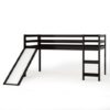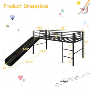 Twin Metal Loft Bed with Slide Safety Guardrails and Built-in Ladder-Black – Color: Black – Size: Twin Size