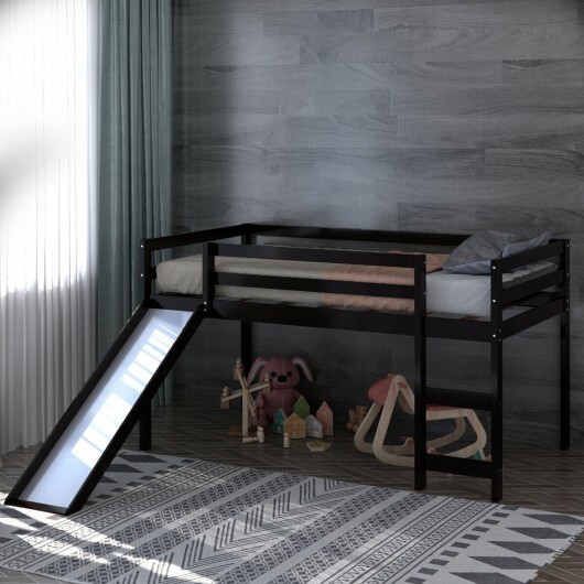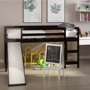 Specifications: Color: Dark Brown/White Material: Pine wood engineered wood Overall dimension: 78.5″ x 82″ x 44.5″ (L x W x H) Step distance Weight capacity: 175 lbs Net weight: 66 lbs Applicable mattress size: Twin Mattress not included Package include: 1 x Twin loft bed with slide 1 x Instruction