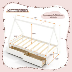 Twin Size Wooden Tent Platform House Bed with 2 Drawers-White – Color: White – Size: Twin Size