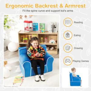 Specifications: Color: Pink/Blue/Navy/Gray Material: Velvet fabric sponge Overall dimension: 27″ x 18″ x 19.5″ (L x W x H) Seat size: 12.5″ x 14″(L x W ) Seat height from the ground: 7″ Armrest height from the ground: 14.5″ Net weight: 4.5 lbs Weight capacity: 95 lbs Suitable age: 0-5 years old Package includes? 1 x Kids sofa 1 x Instruction