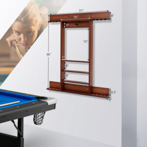 Specifications: Color: Black/Brown Material: Pine Wood Overall dimension: 31″x 3″x 36″ (L x W x H) Load capacity of each shelf: 11 lbs Net weight: 8 lbs Package includes: 1 x Billiards pool cue rack 1 x Instruction