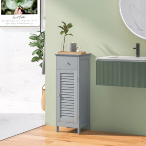 Woodern Bathroom Floor Storage Cabinet with Drawer and Shutter Door-Gray – Color: Gray
